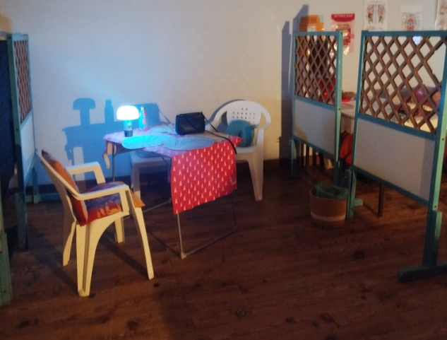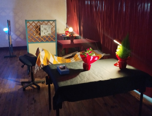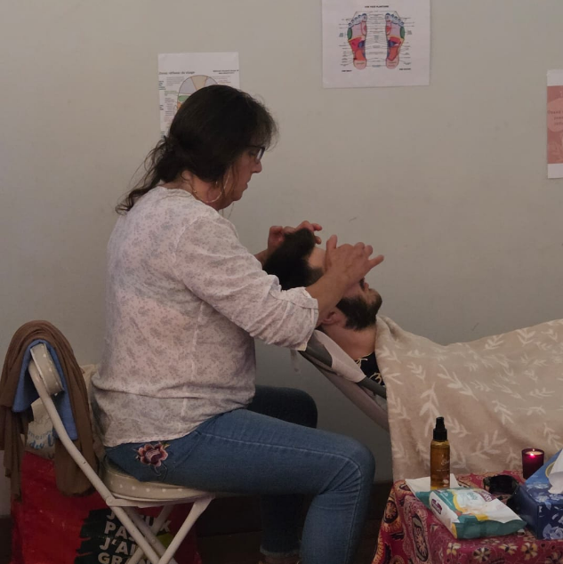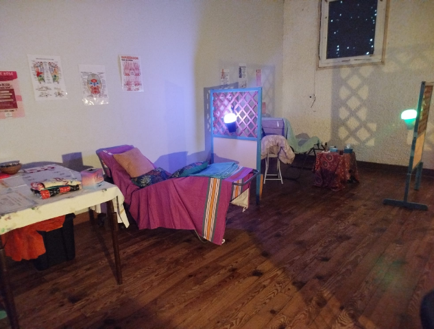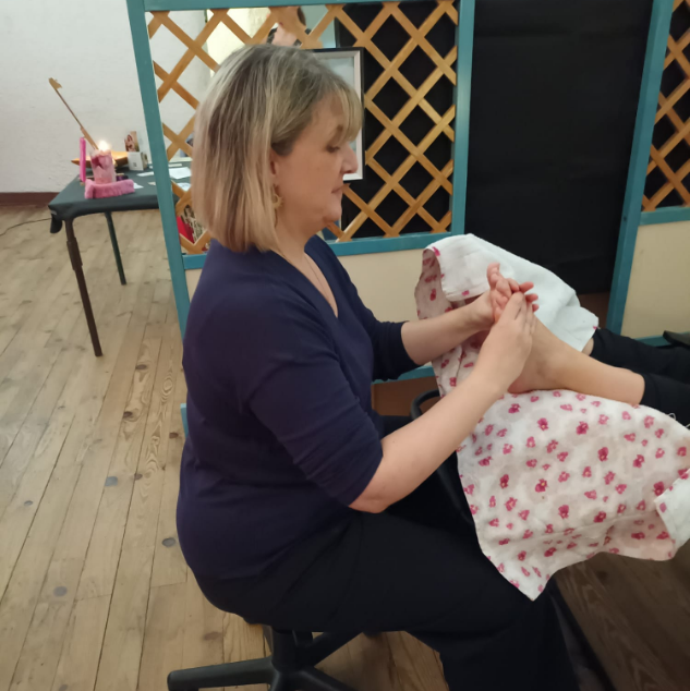 L’atelier de réflexologie a été installé sur la scène de la salle polyvalente de la commune d’Orleix. Dans ce contexte de fête, j’ai eu à cœur d’offrir aux participants un cadre propice à la relaxation afin de leur permettre, l’espace d’un instant, de lâcher-prise. Et c’est ainsi que, dans une ambiance feutrée aux lumières tamisées, et bercé par une musique douce et apaisante, chacun a pu s’offrir une douce parenthèse.